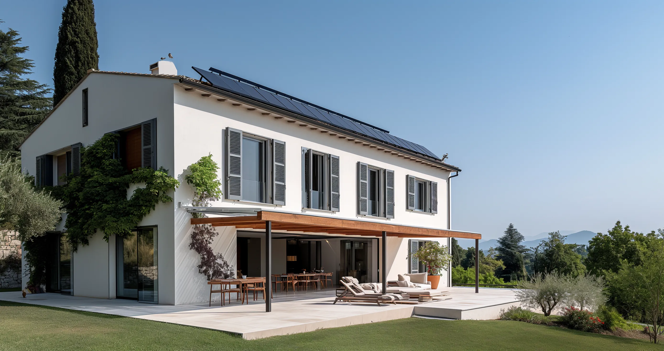 Този истински рай включва първокласни екологични материали и слънчеви панели на покрива, предлагащи устойчивост без компромис с лукса. При влизане капаците в италиански стил и стоманените прозоречни рамки приканват естествена светлина и живописни гледки.
