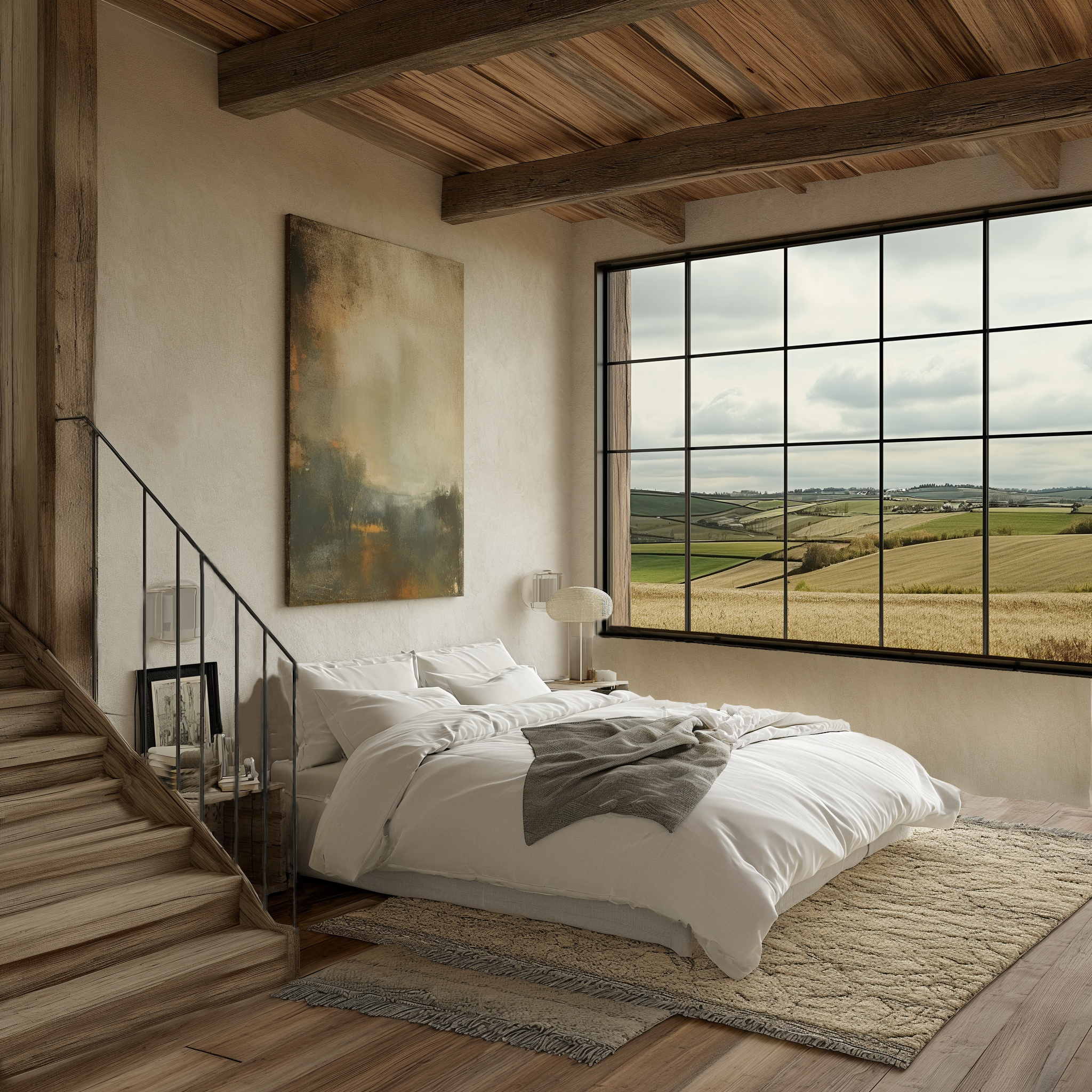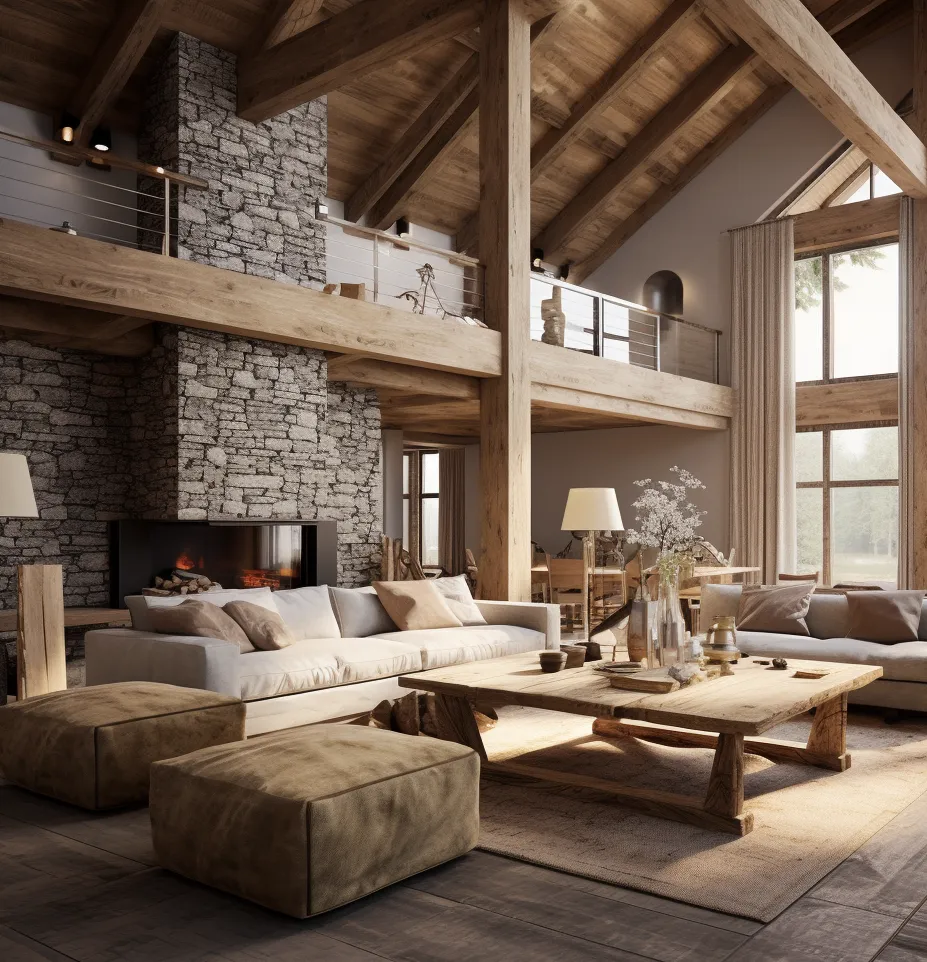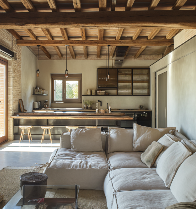 Както слънцето с нежен светлинен каскад преминава през видимите дървени балки, семейството се събира в откритата кухня. Ароматът на сварено кафе се смесва с обещанието на един ден, изпълнен с приключения.